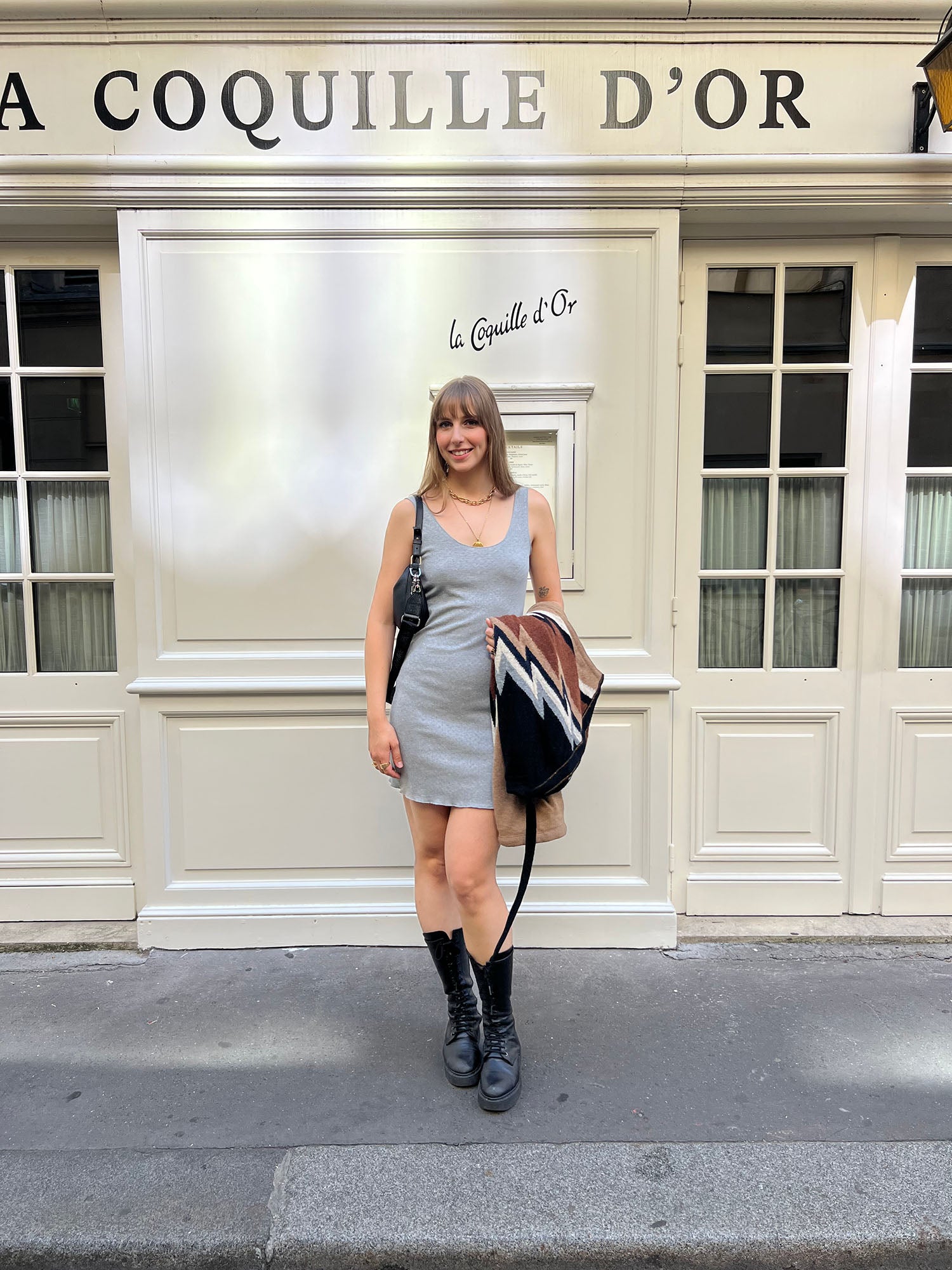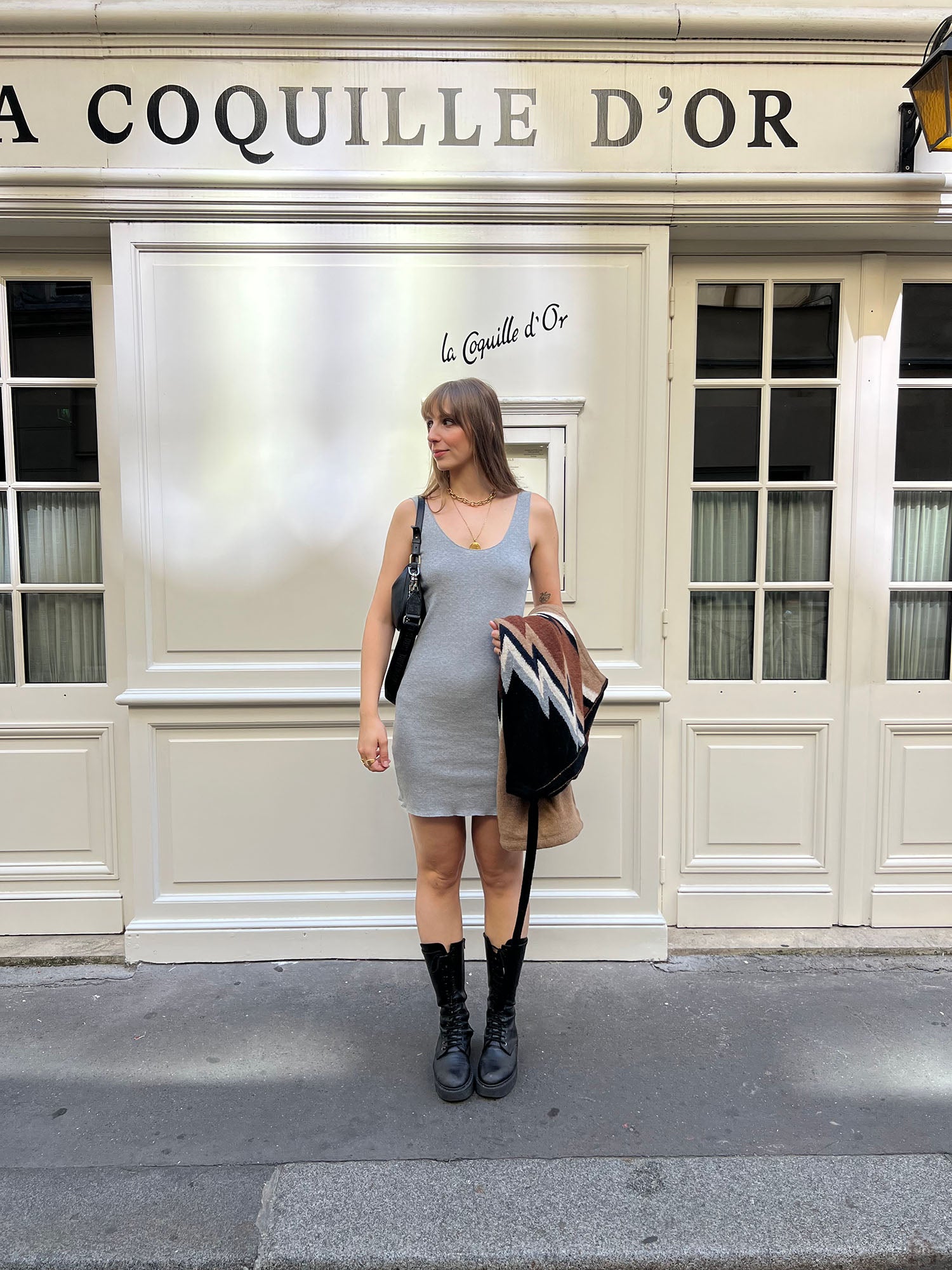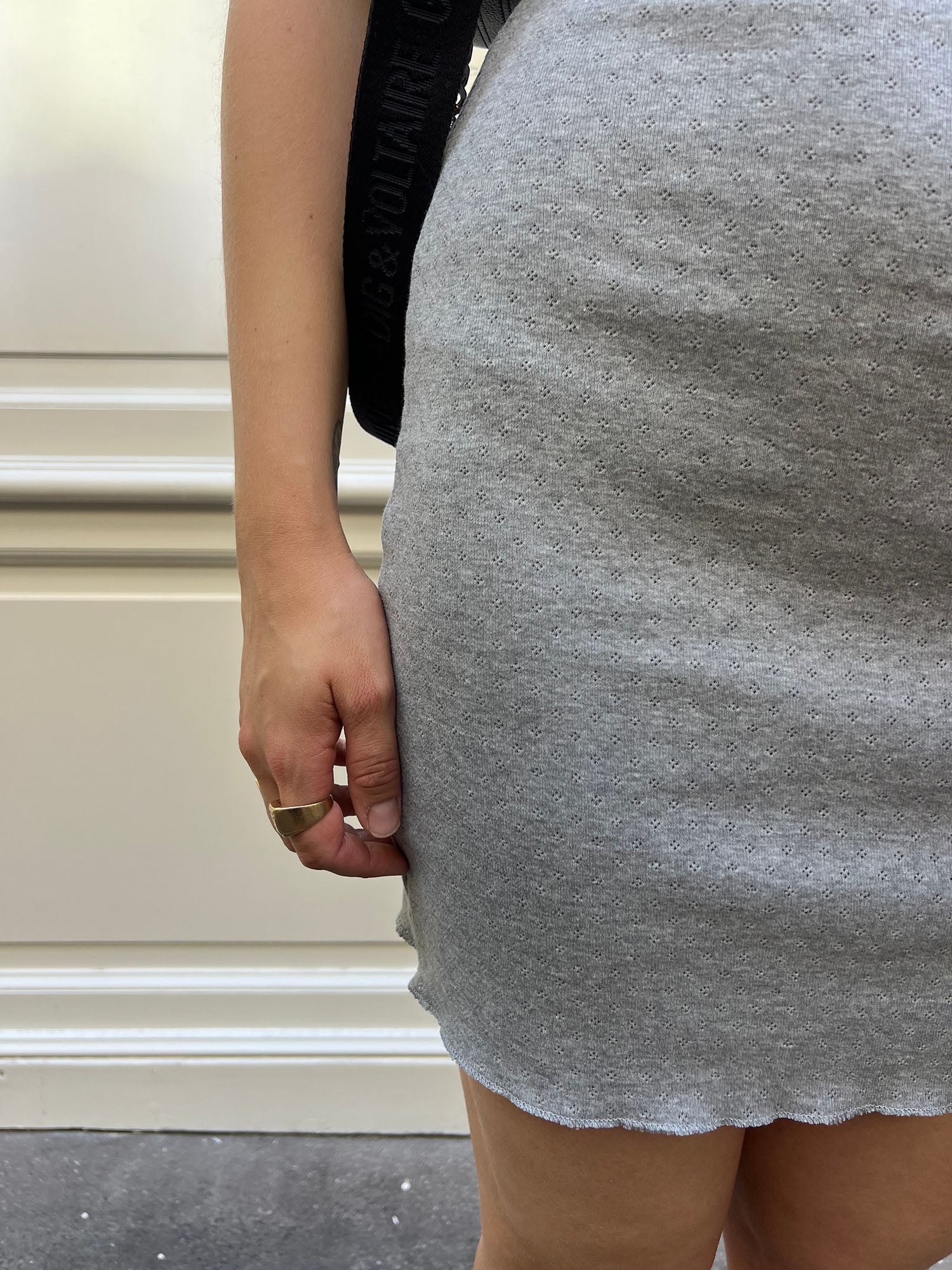 Look parisien ALBA – robe Noah jersey pointelle gris courte et féminine